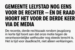 én de raad hoort het wéér via de media De recente publicatie onder de kop “Moeder versus gemeente Lelystad; waar moet 11-jarige zoon jeugdzorg krijgen”
